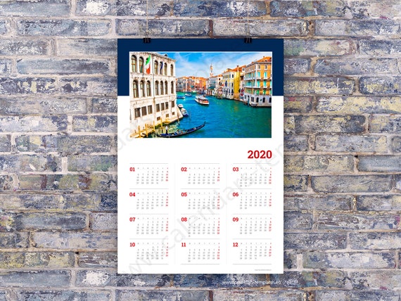 2020 Yearly Poster Wall Calendar Template Kjp W12 Size A3 A2 A1 A0 Pdf Format