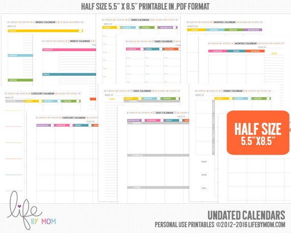 5 5 X 8 5 Undated Planner Calendars Printable Pdf Filofax A5 Binders Kikki K Arc Notebooks Discbound Inserts Daytimer Franklin Covey