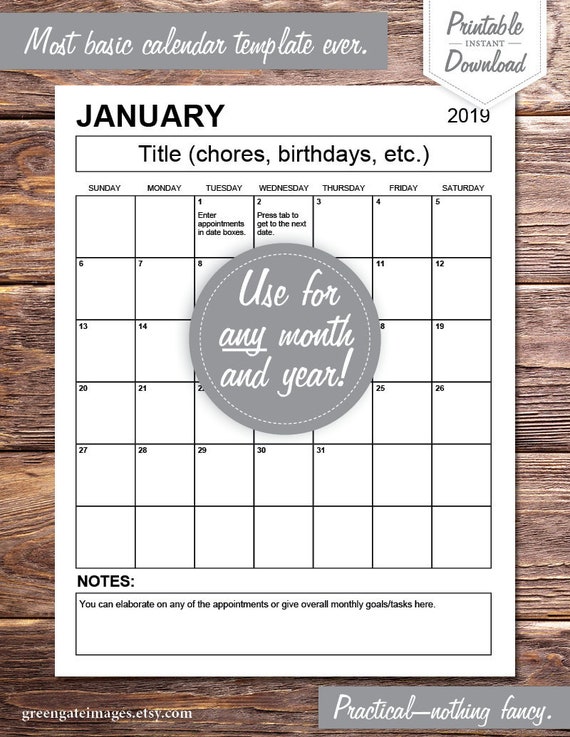 Editable Calendar Pdf Any Year Fillable Printable Monthly Planner Meal Planner Digital Download Calendar Template One Month Calendar