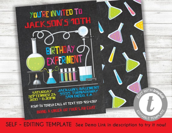 Science Lab Experiment Birthday Party Invitation Template Printable Invite Instant Download Editable Text Templett