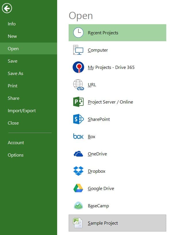 Open Sample Project Project Plan 365