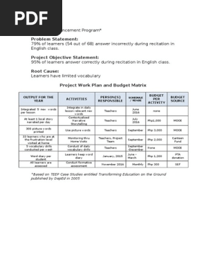 Project Work Plan And Budget Matrix Cp 2016