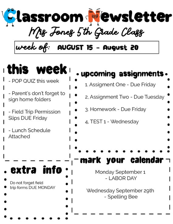 You can use the space available to include the. You can add lesson details announcements along with attractive graphic school logos any many other things by using these classroom newsletter templates. These templates will act as a blueprint for your newsletter.