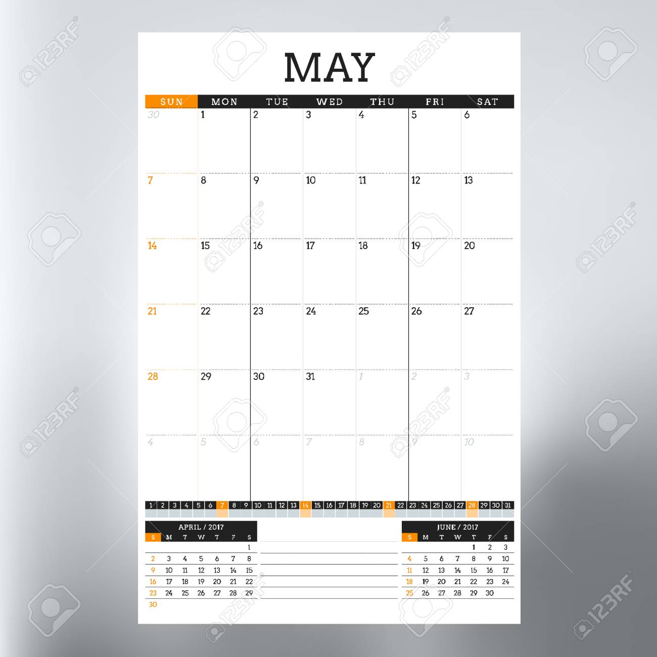 Calendar Template For May 2017 Week Starts Sunday Design Print
