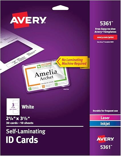 Avery Self Laminating Cards Printable 2 1 4 X 3 1 2 30 Id Badge Holders 5361