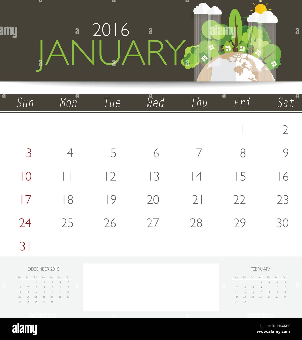 2016 Calendar Monthly Calendar Template For January Vector