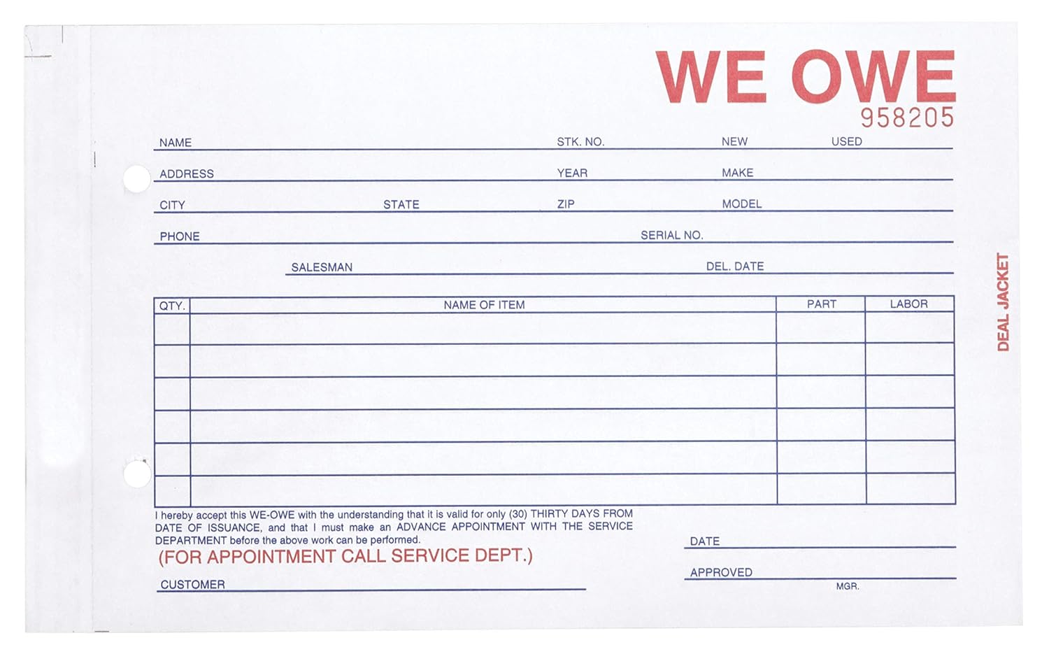 Amazon Com Sswbasics 3 Part We Owe Agreement Form 8 1 2