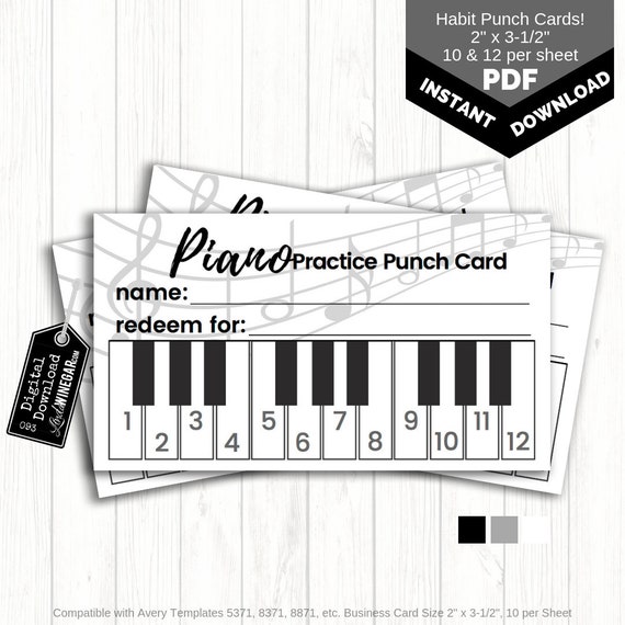 Piano Practice Punch Card Habit Cards For Teens Kids Punchcards Reward Punch Card Printable 10 Sheet Instant Download 8 5x11 Pdf