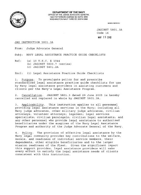 Navy Legal Assistance Practice Checklist U S Navy Judge