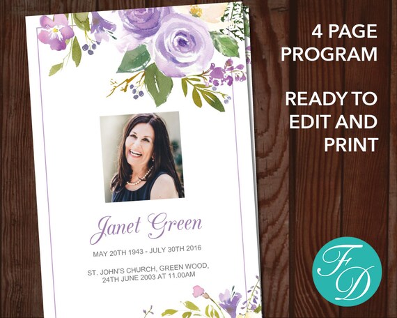 Obituary Template Funeral Program Template Watercolor Funeral Program Celebration Of Life Program Memorial Program 0094