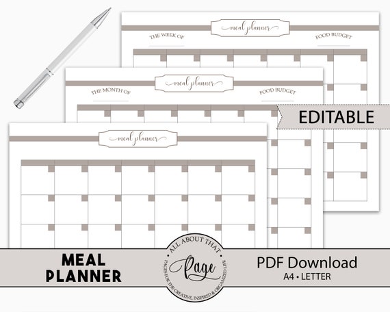 Editable Meal Planner Printable Weekly Monthly Menu Planning Template Freezer Batch Cooking Pdf Template Mocha Neutral Rmp05 04 Mpp