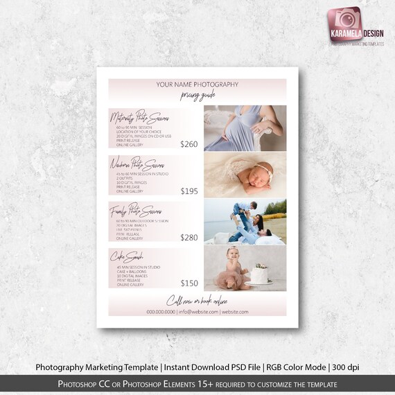 Photography Pricing Guide Template A La Carte Menu Maternity Pricing Template Newborn Price List Template Photo Session Family Sessions