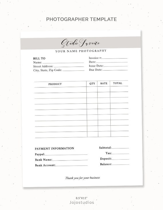 Invoice Form Printable Order Form Instant Download Photographer Invoice Photoshop Photography Invoice Template For Photographers Receipt