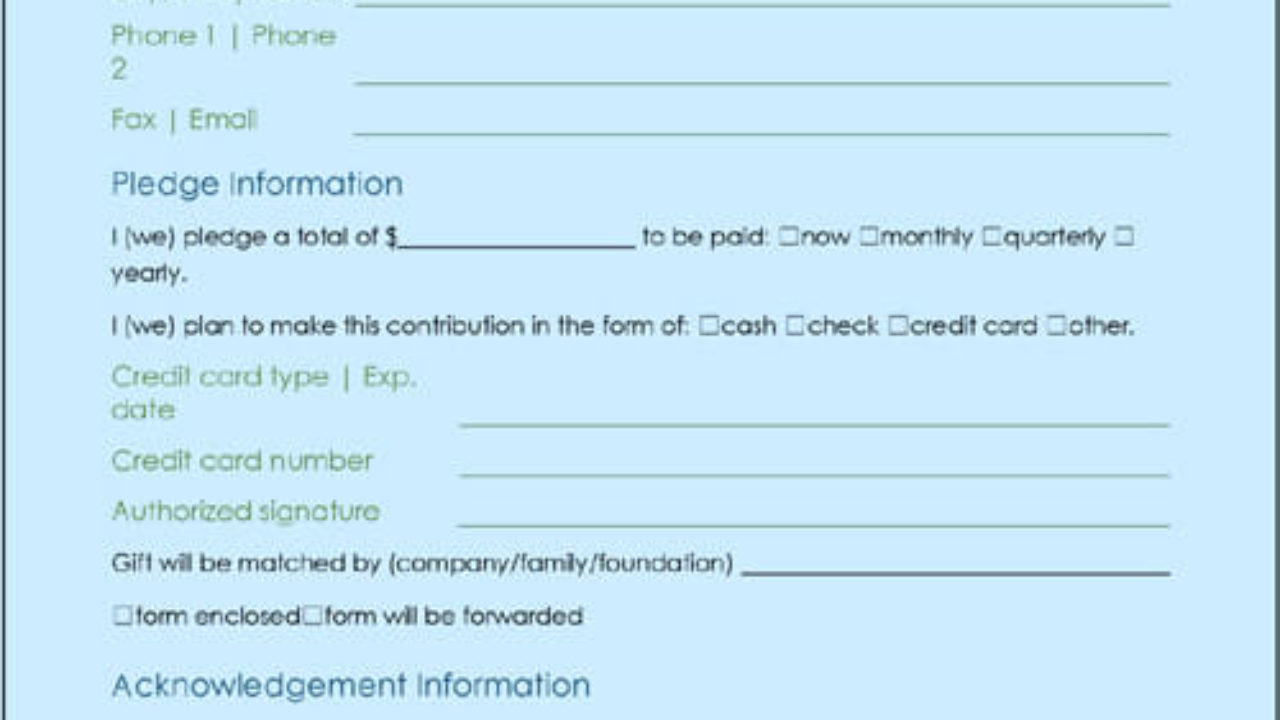 Pledge Form For Donations Small Business Free Forms