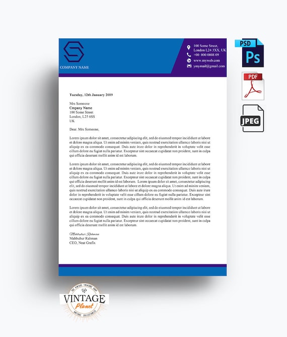 Professional Letterhead Template Blue Dark Blue Theme A4 Size Easy Customizable And Editable Psd Pdf Jpeg File Instant Download