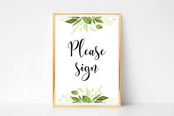 Greenery Please Sign Sign Template Printable Green Welcome Guestbook Decor Signage 4x6 5x7 8x10 Signs Instant Download Pdf Jpeg