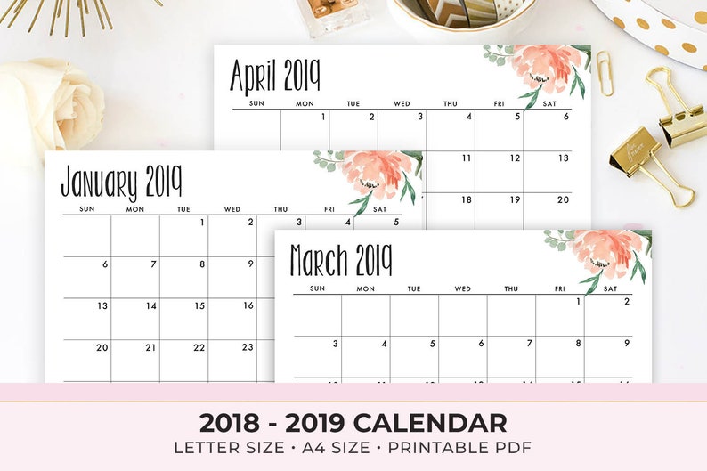 2019 Calendar Printable 2018 2019 Calendar Template Monthly Calendar 2019 Monthly Planner Instant Download