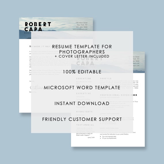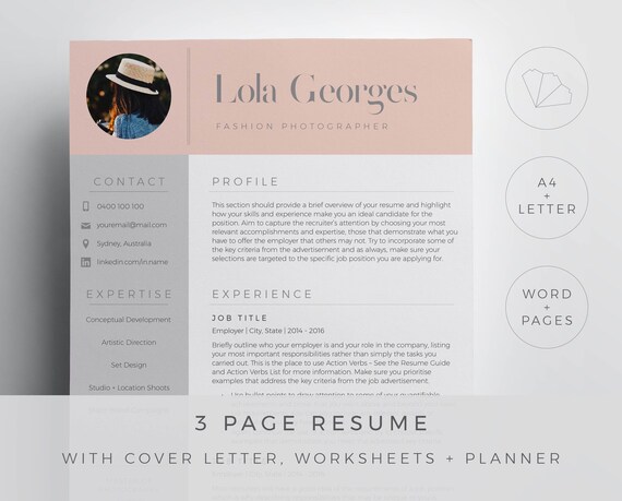 Fashion Photographer Resume Template For Word And Pages In A Chic And Stylish Design 3 Page Resume Cover Letter References And Guides