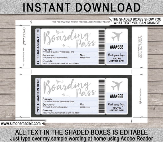 Birthday Fake Plane Ticket Printable Boarding Pass Surprise Trip Or Flight Gift Instant Download Editable Text