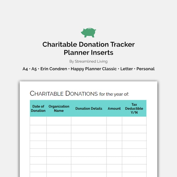 Charitable Donation Tracker Log Printable Planner Page Insert Financial Organization A4 A5 Personal Hp Ec Letter