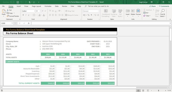 Pro Forma Balance Sheet Example Statement Sample Excel