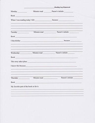 Fillable Online Sample Reading Log Doc Fax Email Print