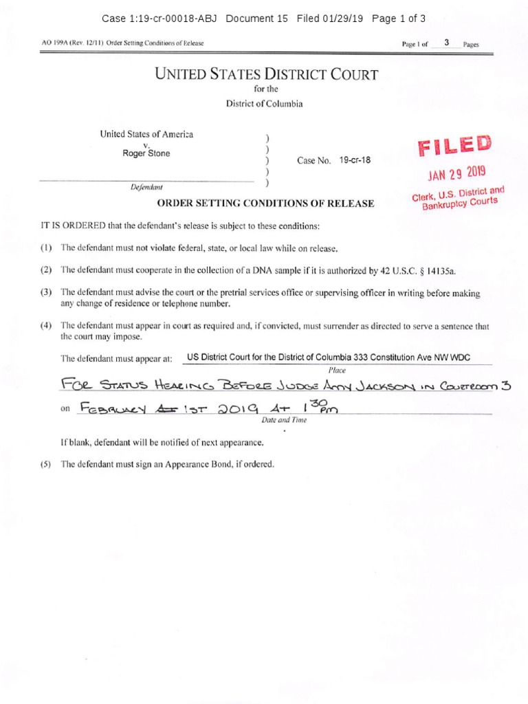Order Setting Conditions Of Roger Stone S Release