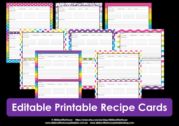 Printable Recipe Cards Pdf Instant Download Templates