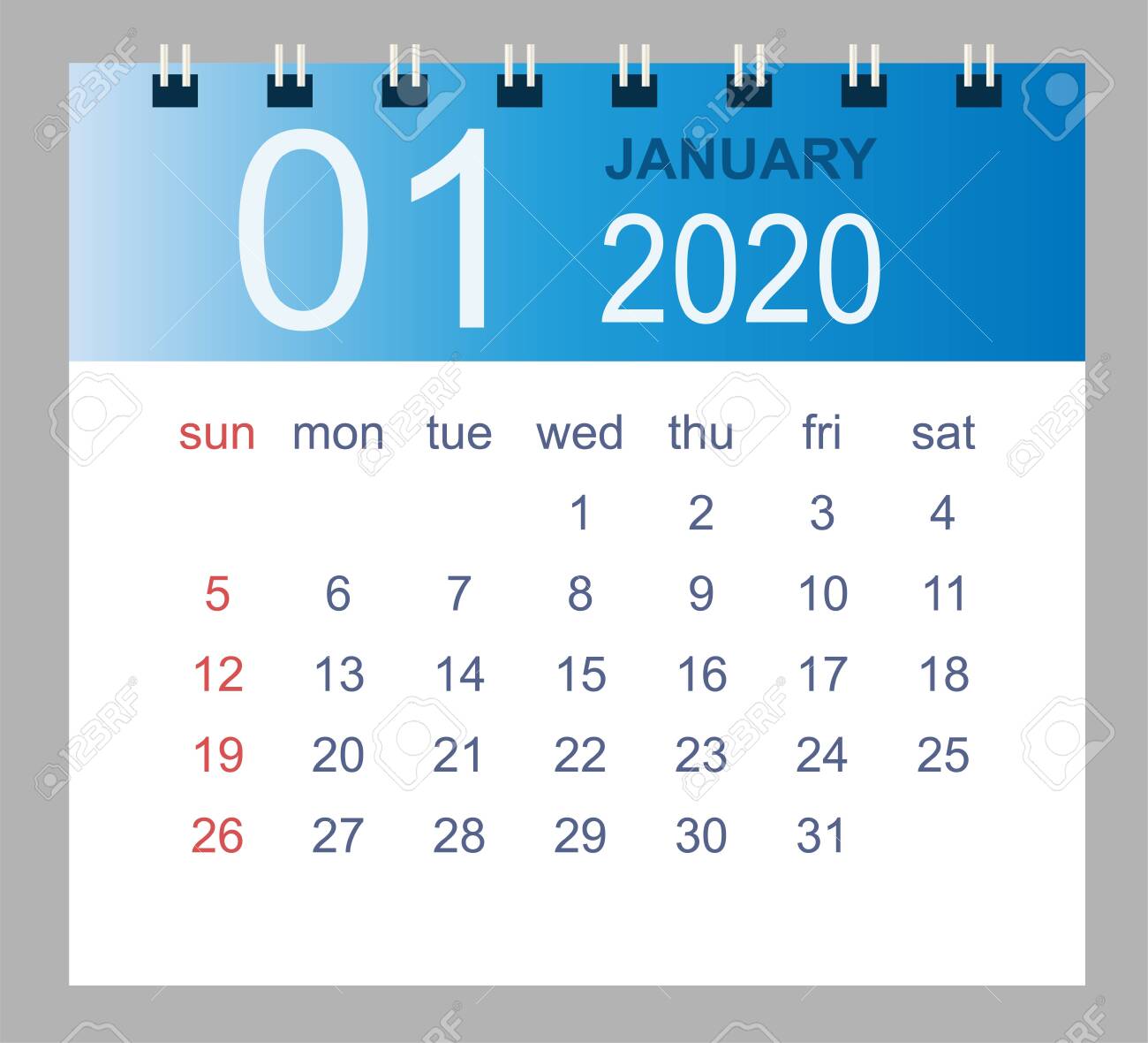 January 2020 Vector Monthly Calendar Template 2020 Year In Simple