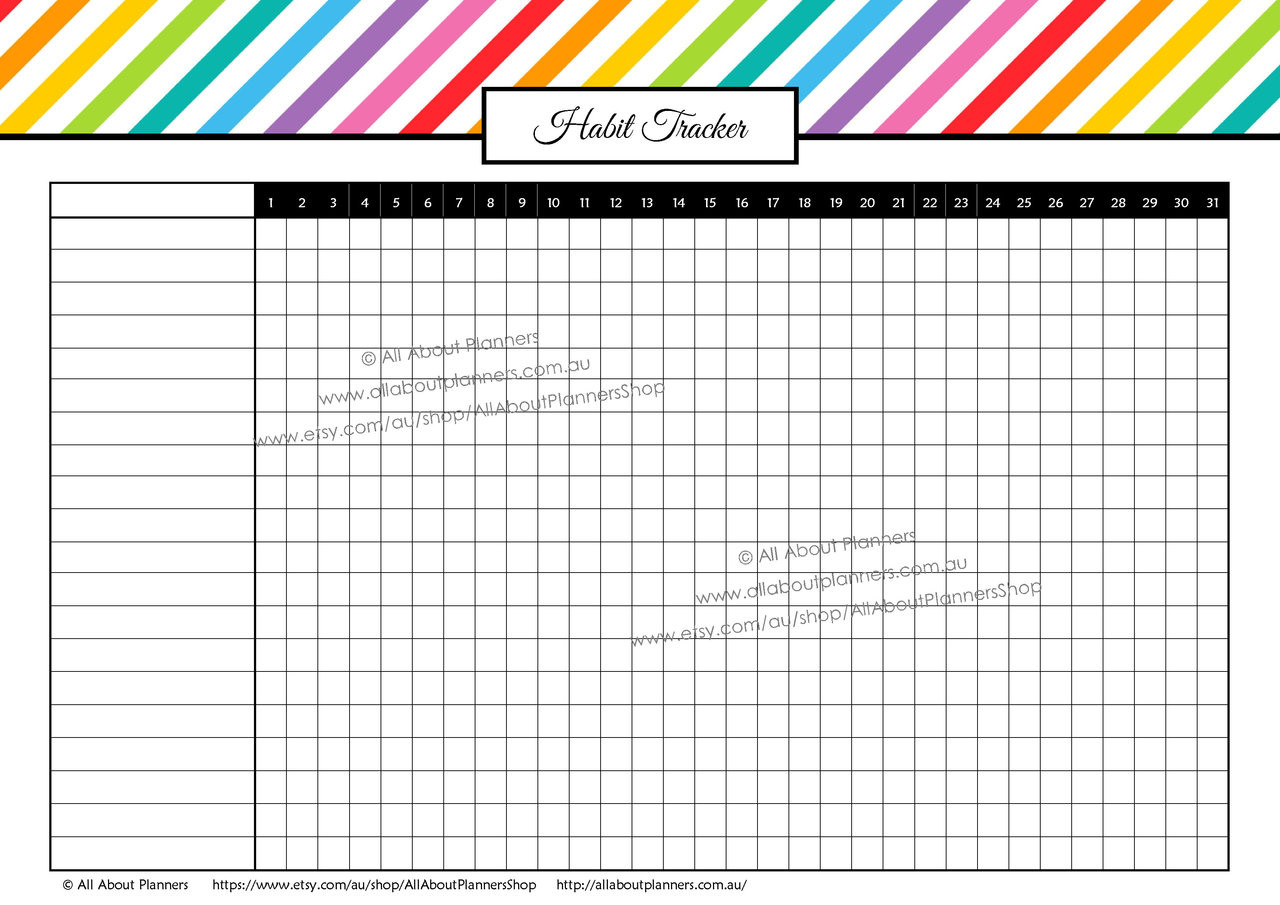 Habit Tracker Rainbow Stripes Monthly Editable
