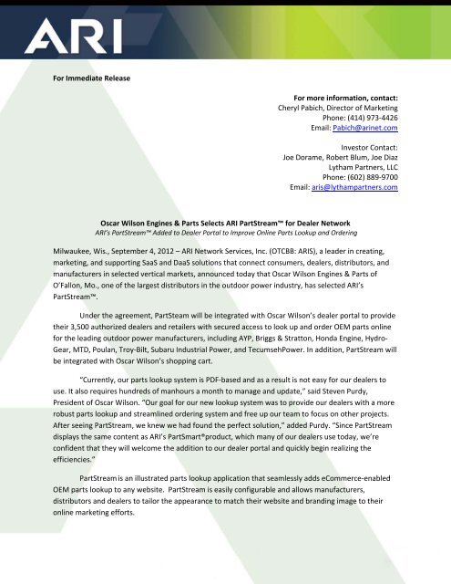 Oscar Wilson Engines Parts Selects Ari Ari Network