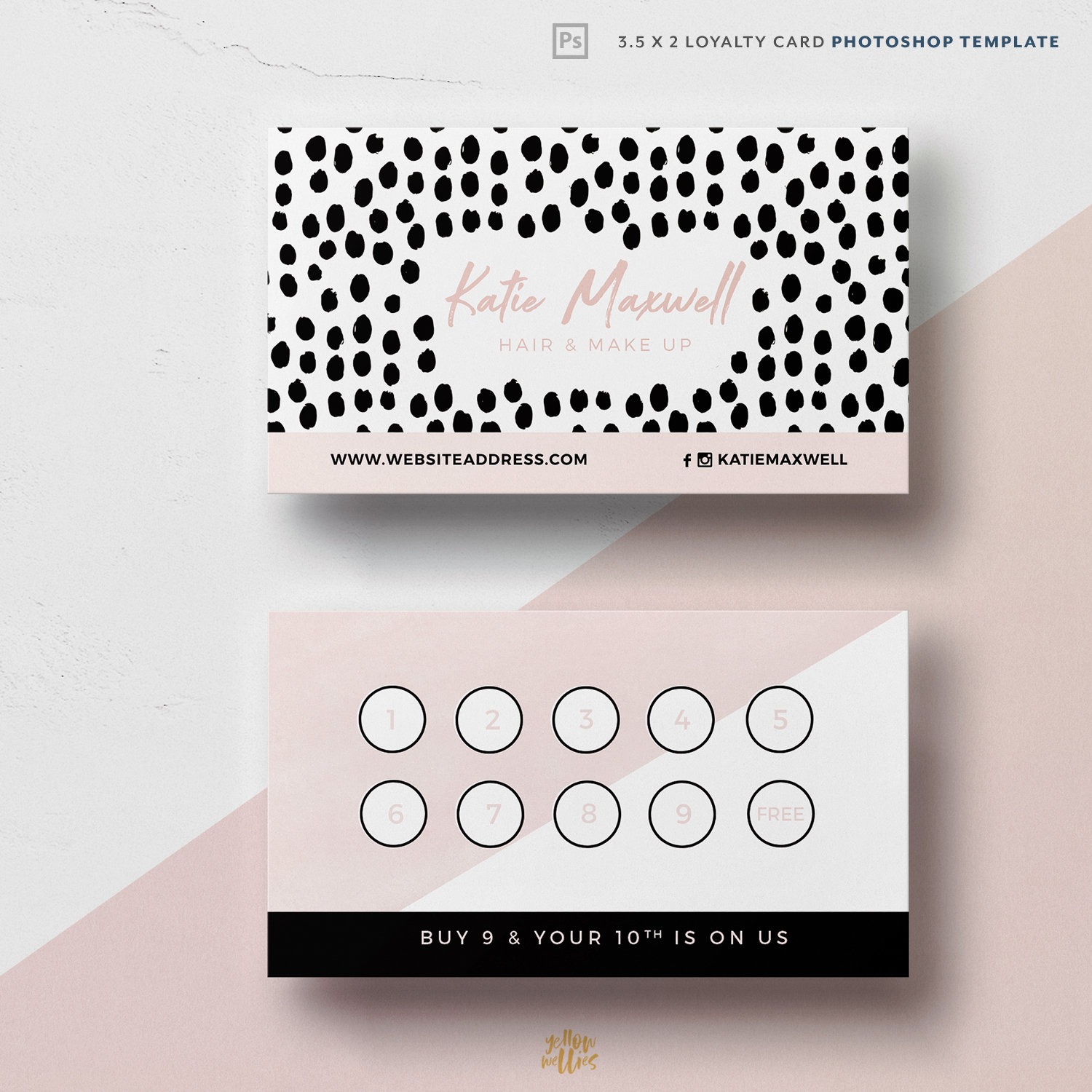 Blush And Black Polka Dot Loyalty Card Photoshop Template Hair Loyalty Card Instant Download Punch Card
