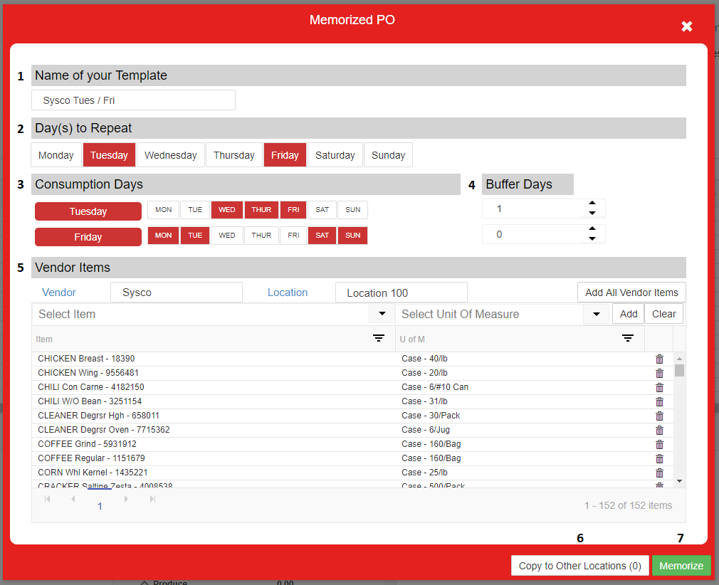 Memorized Purchase Orders Support Center