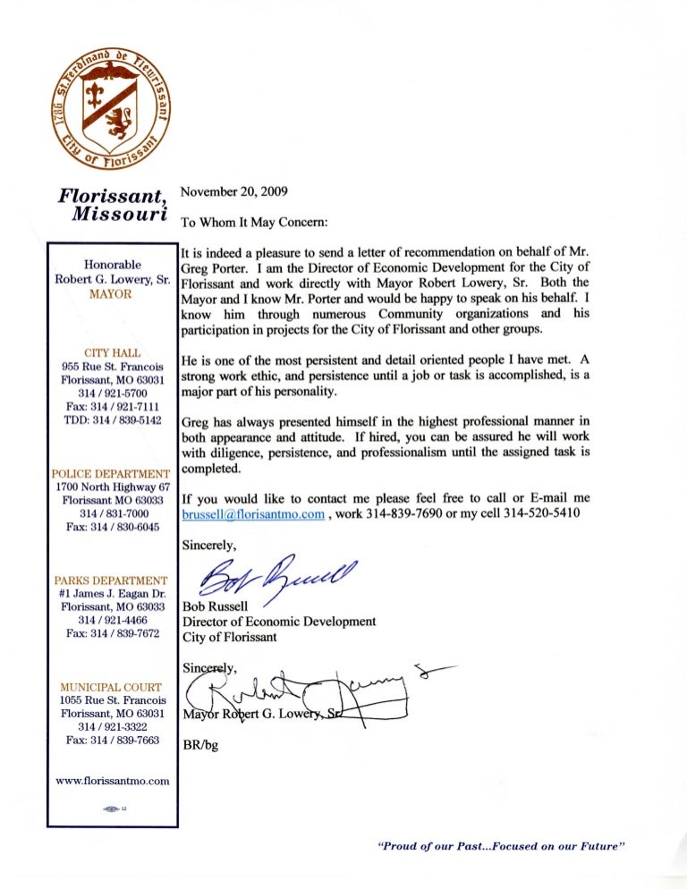 Letter Of Recommendation From Bob Russell And Mayor Lowery