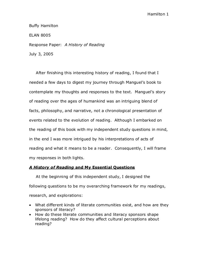 Response Paper To A History Of Reading Buffy Hamilton Elan