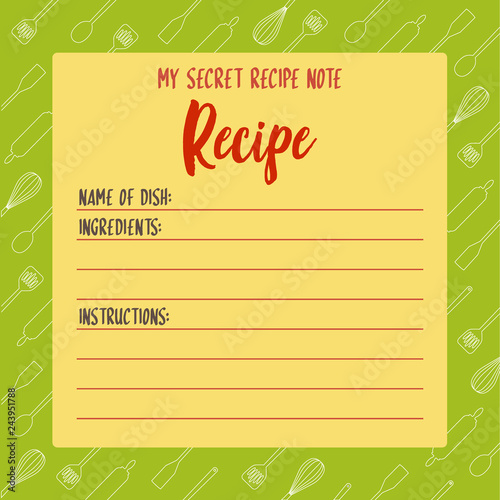 My Secret Recipe Note Cooking Class Recipe Blank Design