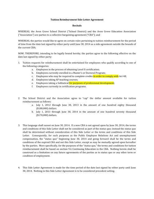Tuition Reimbursment Side Letter Agreement Recitals Whereas
