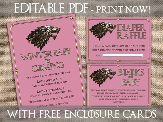 Game Of Thrones Invitation Template Baby Shower Cards Party Printable Books For Baby Diaper Raffle Got Baby Shower