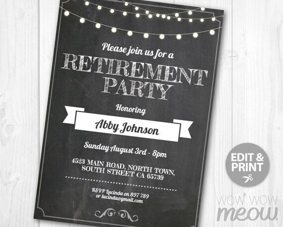Retirement Invite Retiring Party Invitation Instant Download Editable Printable File Chalk Lights Vintage Rustic Mens Womens Announcement