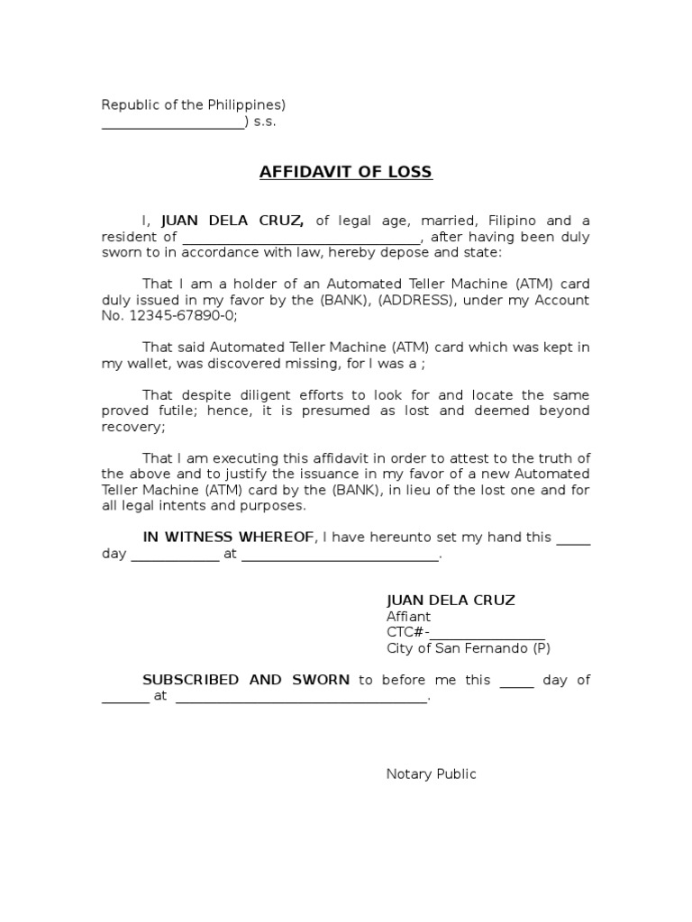 If you are looking for Sample Affidavit Of Loss Atm Card you have come to the right place. We have many more template about Sample Affidavit Of Loss Atm Card including template, printable, photos, wallpapers, and more. In these page, we also have variety of images available. Such as pdf, jpg, animated gifs, pic art, logo, black and white, transparent, etc.