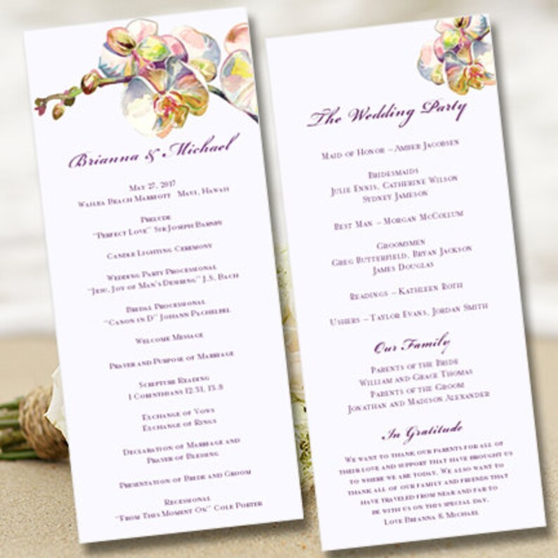 Printable Wedding Ceremony Program Template Orchid Tea Length Tropical Editable Word W Sample Text Instant Download You Print