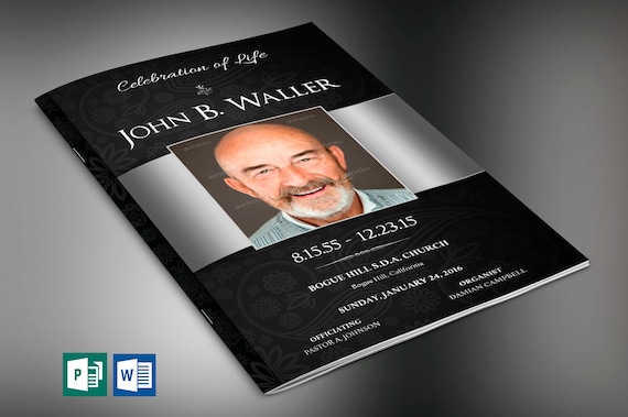 Black Silver Dignity Funeral Program Publisher Word Template 8 Pages Bi Fold Size 5 5 X8 5