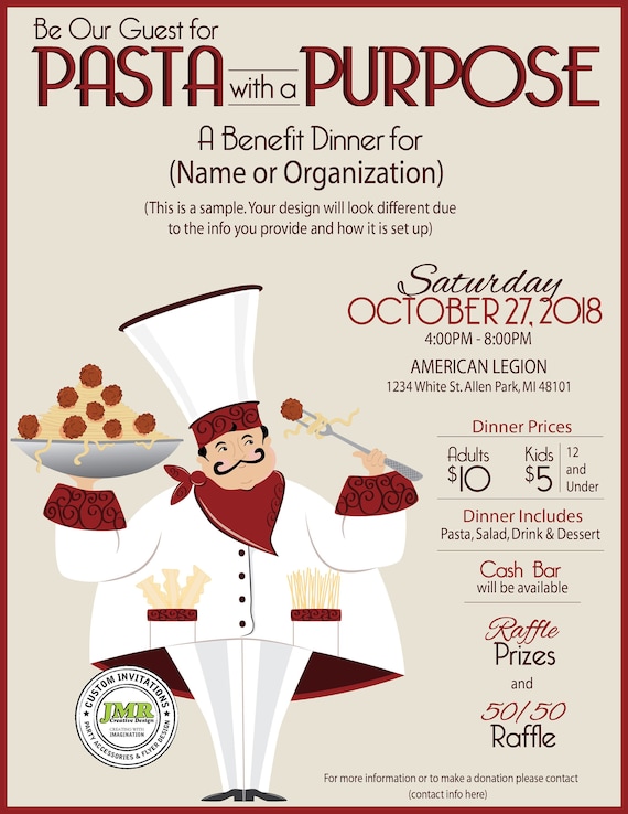 Spaghetti Dinner Fundraiser Italian Dinner Fundraiser Event Flyer Benefit Dinner Flyer Pasta Dinner Fundraiser