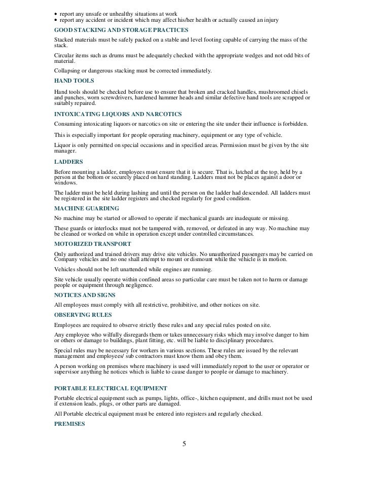 Sample health and safety plan. Health and safety legislation and standards. It was prepared based on the best available information regarding the physical and chemical hazards known or suspected to be present on the project site. They are not intended to supersede the requirements in osha standards.