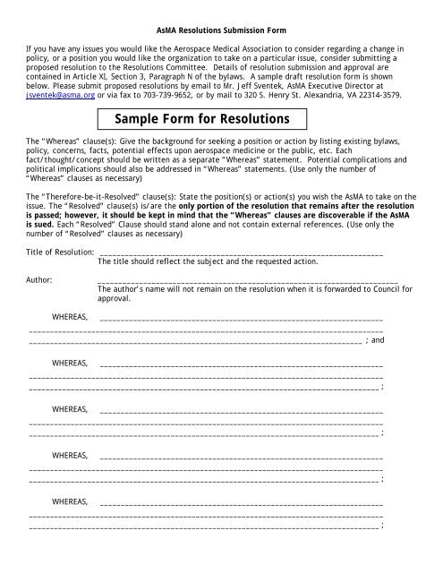 Asma Proposed Resolution Submission Form Aerospace Medical