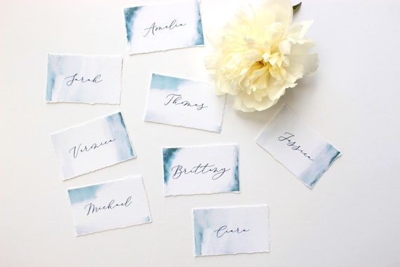 Sample Dusty Blue Place Cards Watercolor Place Cards Tent Place Card Navy Blue Place Card Deckle Edge Place Cards Escort Cards