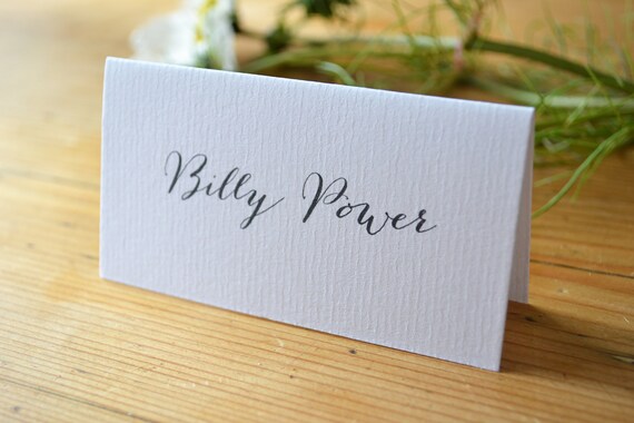 Sample Only Wedding Place Cards Calligraphy Table Name Folded Textured Card Script Font Tent Style Heart On Reverse