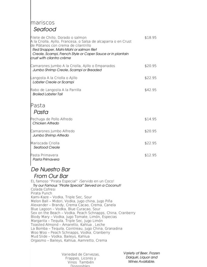 Restaurant Menu List Sample Pantanalrestaurant