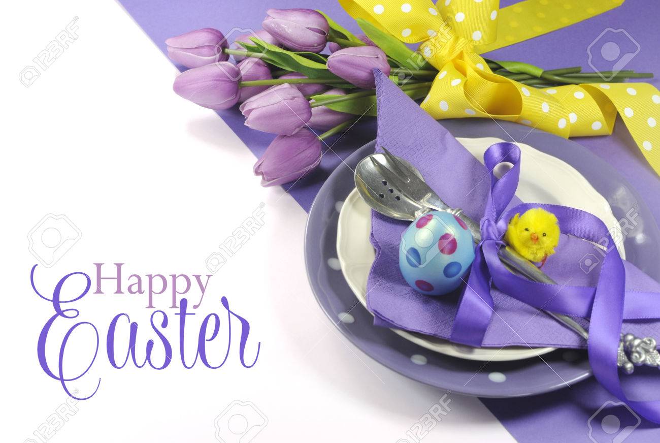 Happy Easter Yellow And Purple Mauve Lilac Theme Easter Table