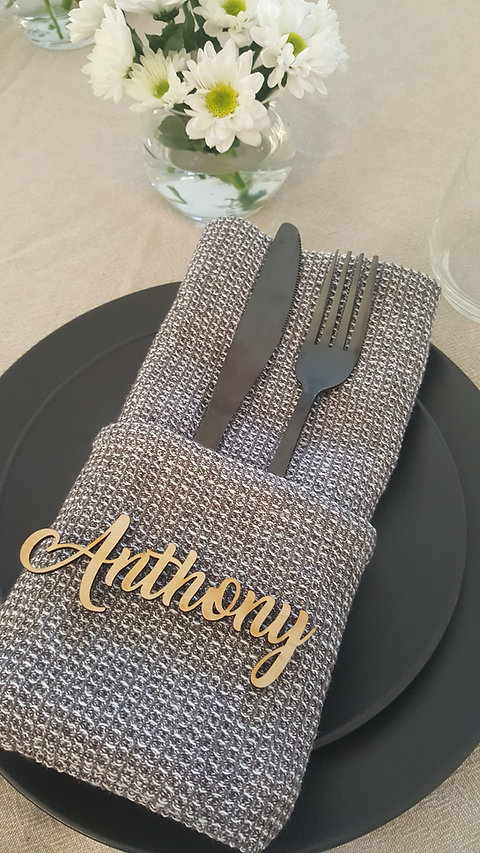 Mirrored Laser Cut Wedding Place Setting Sample Here S To Us